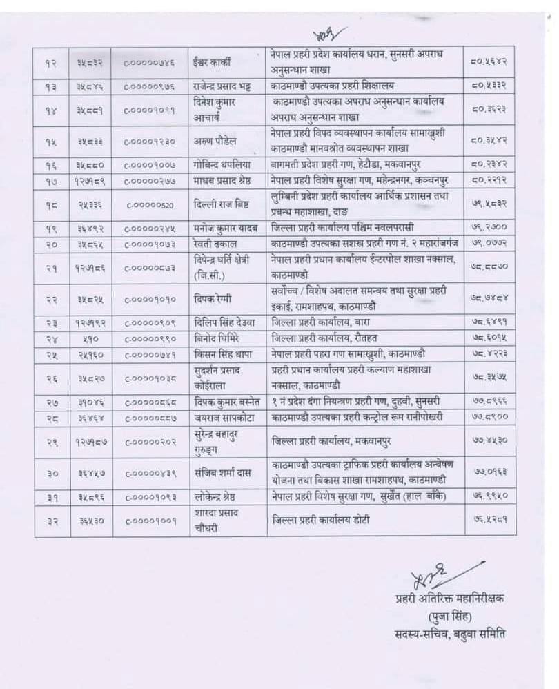 ३२ एसपी एसएसपी बढुवामा सिफारिस (सूचीसहित)