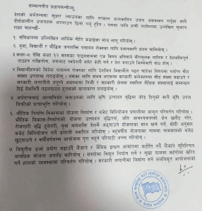 एकीकृत समाजवादीले प्रधानमन्त्रीलाई बुझायो २० बुँदे ज्ञापन–पत्र